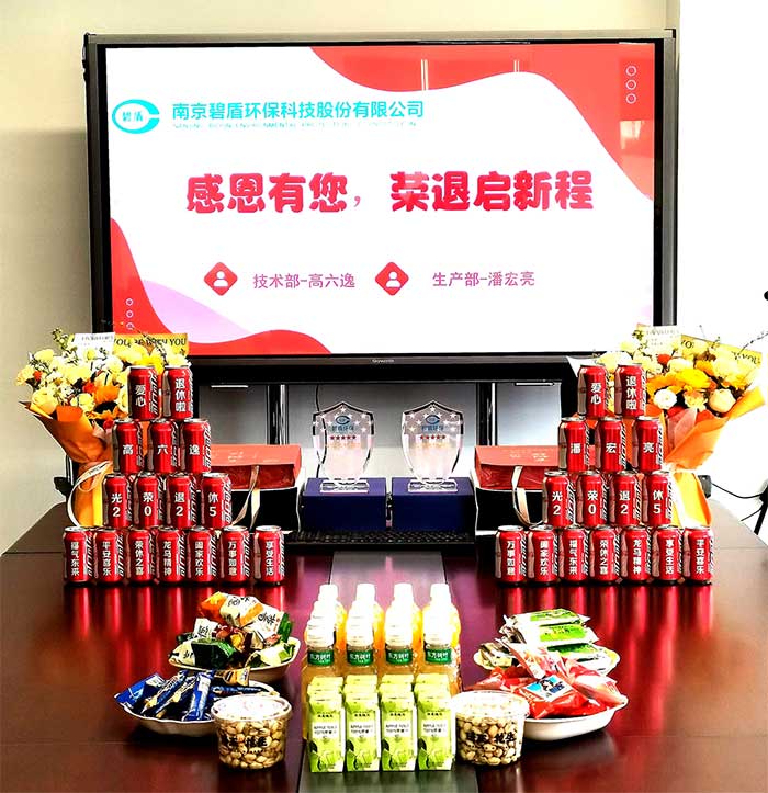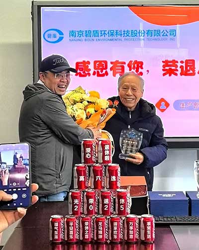 2025年2月27日上午午,南京碧盾科技公司會議室內溫情涌動,一場簡樸而莊重的退休歡送會在此舉行。公司領導及同事齊聚一堂,共同歡送技術部高六逸(2002年7月1入職,81歲)同志,生產部潘宏亮(2005年12月15入職,76歲)同志光榮退休,致敬他們這么多年在工作崗位的堅守與奉獻。